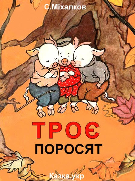 Були собі на світі троє поросят. Троє братів. Всі однакові на зріст, кругленькі, рожеві, з однаковими веселими хвостиками. Навіть імення в них були схожі. Звали поросят: Ніф-Ніф, Нуф-Нуф і Наф-Наф. Все літо вони перекидалися в зеленій траві, грілися на сонечку, ніжилися в калюжах. Та ось надійшла осінь. Сонце вже не так добре припікало, сиві хмари тягли над пожовклим лісом. – Пора нам подумати про зиму, – сказав якось Наф-Наф своїм братам, прокинувшись рано-вранці. – Я вже тремчу від холоду. Ми можемо застудитись. Треба нам збудувати будинок і зимувати разом під одним теплим дахом. Але його братам не хотілося братись за роботу. Куди приємніше останніми літніми днями гуляти й стрибати по лузі, аніж рити землю і тягати каміння. – Встигнемо! До зими ще далеко. Ми ще погуляємо, – сказав Ніф-Ніф і перекинувся через голову. – Коли треба буде, я сам собі збудую дім, – сказав Нуф-Нуф і ліг у калюжу. – І я так само, – додав Ніф-Ніф. – Ну, як собі хочете. Тоді я сам один будуватиму собі дім, – сказав Наф-Наф. – На вас не чекатиму. З кожним днем все холоднішало і холоднішало. Але Ніф-Ніф та Нуф-Нуф не поспішали. Вони й думати не хотіли про роботу. Вони байдикували з ранку до вечора. Тільки те й робили, що гралися у свої поросячі ігри, стрибали й перекидалися. – Сьогодні ми ще погуляємо, – казали вони, – а завтра зранку візьмемось до діла. Але й наступного дня вони казали те ж саме. І тільки тоді, коли велика калюжа край дороги стала щоранку вкриватися тоненькою корочкою льоду, ліниві брати сгодилися нарешті працювати. Ніф-Ніф зметикував, що найшвидше і найпростіше збудувати будинок з соломи. Ні з ким не порадившись, він так і зробив. Вже до вечора його хатка була готова. Ніф-Ніф поклав на стріху останню соломину і, дуже задоволений своєю хаткою, весело заспівав: Хоч півсвіту обійти. Обійти, обійти, Кращу хатку не знайти, Не знайти, не знайти! Наспівуючи цю пісеньку, він пішов до Нуф-Нуфа. Нуф-Нуф неподалік теж будував собі хатку. Він намагався якнайшвидше покінчити з цією нудною й нецікавою справою. Спочатку, так само як і брат, він хотів збудувати собі хатку з соломи. Але потім вирішив, що в такій хаті взимку буде дуже холодно. Хата буде міцніша й тепліша, якщо її збудувати з гілок і тонких лозинок. Так він і зробив. Він забив у землю кілки, заплів їх лозинами, на покрівлю навалив сухого листя, і до вечора будинок був готовий. Нуф-Нуф з гордістю обійшов його кілька разів навколо і заспівав: А у мене гарний дім, Добрий дім, теплий дім! Не злякають дощ і грім, Дош, і грім, дощ і грім! Не встиг він закінчити пісеньку, як з-за кущів вибіг Ніф-Ніф. – Ну, ось і твій будинок готовий! – сказав Ніф-Ніф братові. –Я ж казав, що ми й самі впораємось із цим ділом! Тепер ми вільні і можемо робити все, що нам схочеться! – Ходімо до Наф-Нафа і подивимось, який він собі побудував будиночок! – сказав Нуф-Нуф. – Щось давно ми його не бачили! – Ходімо, – згодився Ніф-Ніф. І обидва брати, дуже задоволені тим, що їм вже не треба ні про що турбуватись, зникли за кущами. Наф-Наф ось уже кілька днів займався будівництвом. Він натягав каміння, намісив глини і тепер, не поспішаючи, будував собі надійний, міцний будинок, де можна було б сховатись од вітру, дощу й морозу. Він зробив у будинку важкі дубові двері з засувом, щоб вовк із сусіднього лісу не міг до нього залізти. Ніф-Ніф і Нуф-Нуф застали брата за роботою. – Що 