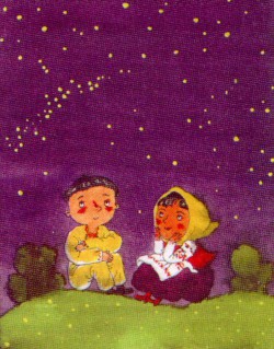 Ну що з нього візьмеш – мале, дурне. Де це хто бачив, щоб віз сам, без коней або волів, їхав? Нема, щоб, як людські діти, якогось доброго діла вчитись. Людські діти все до пуття роблять, та ще й себе глядять – у гурті не зівають. Де що до рук запопало, то вже не видереш! А цей – ну чисто легейда. Що хто не попросить, те й віддасть. Або ще й хлібчиком поділиться з песиком якимось. і в кого воно вдалося таке? За це його сільські діти не любили, ніхто з ним не товаришував, хіба що сусідська Гапочка. Ото посідають на колоді ввечері, комарів гілкою відганяють, на зірки дивляться та все собі сміються. і що там вони в тих зірках знайшли? Краще б ото дивився, як Лейба у шинку хазяйнує, та й комерції вчився – все б до якогось діла пристав.