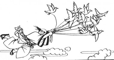 Але ж качок було дев’яносто дев’ять, а він – один. Тому качки понесли Гомбея високо в небо.
